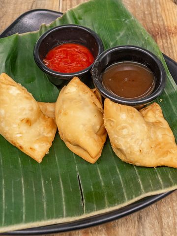 Crispy pastry filled with savory potato and mint Water
